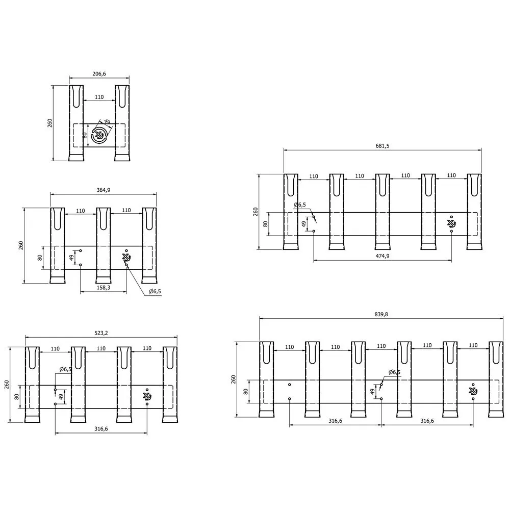 The several stainless-steel rail mounting can be mounted (2 mounts are required):.