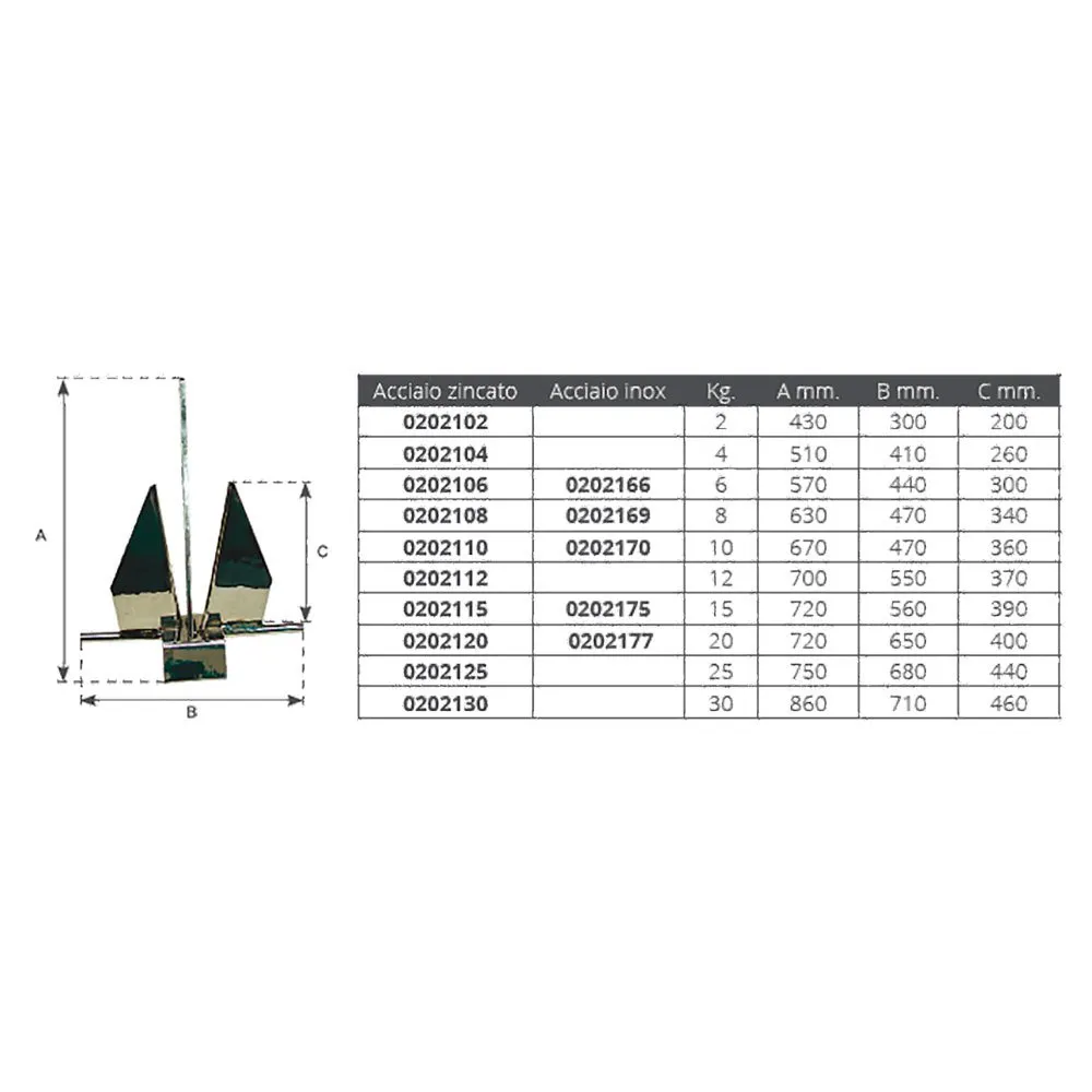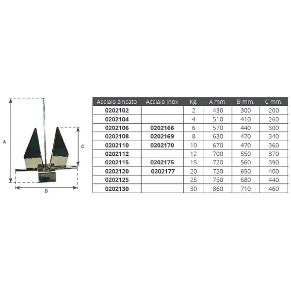 – Galvanized steel Danforth achor. Weight Kg.8.