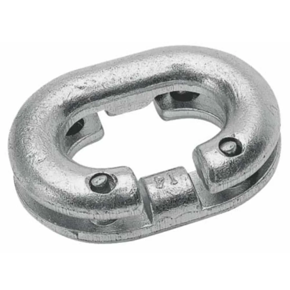 Joining links enable two lengths of chain of the same diameter to be connected to each other without increasing the thickness or creating a blockage in gipsies. Easily attached by bringing rivets into line after set-up. Connects two chains of same diameter.
